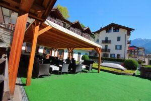 Servizi: garage, deposito sci, parcheggio auto, ascensore, giardino privato, soggiorno, internet - email accessibile, accessibile disabili, custodia valori, terrazza soleggiata, sala TV, sala lettura, bar