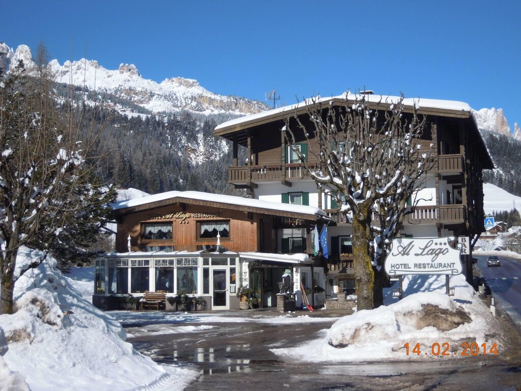 A Soraga, in Val di Fassa, nel cuore delle , la famiglia Pellegrin fa dell' ospitalità un suo punto d´orgoglio, offre ai suoi ospiti gli ingredienti ideali per trascorrere momenti di tranquillità in un´atmosfera piacevole e rilassante. L´Hotel Al Lago testimonia la fedeltà alla tradizione ed alla così ricca di storia e di laboriosità. La nostra cucina vi offrirà una ricca varietà con piatti della tradizione e della cucina tradizionale italiana, con la possibilità di decidere un proprio Menù vegetariano o su misura per coloro che presentano intolleranze o allergie. Il - è anche aperto al pubblico. L'albergo dispone inoltre di una Zona con , , grande con giochi d'acqua, una parete di , dai molteplici benefici, e la stanza per il . Per i Vostri : ampia e spaziosa Fermata pullman di linea e skibus davanti all´Hotel.