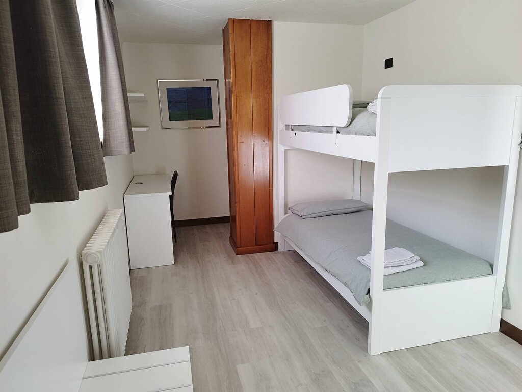 Confortevole trilocale, luminoso e appena ristrutturato ( nel 2023), composto da ampio ingresso, due camere da letto, una matrimoniale ed una con letti a castello, una cuspaziosa con divano letto ed un bagno. Disponibile WI-FI, piano cottura ad induzzione, lavastoviglie, frigorifero e TV Smart. Fa parte di un ampia villa in posizione panoramica sopra al centro di Caderzone terme, con centro terme borgo salute, SPA e centro benessere a 200 metri, golf club Val Rendena a 500 metri, bar e supermercato a 200 metri. Gli impianti di risalita di Pinzolo si trovano a solo 4 Km. Si fornisce biancheria da letto e da bagno. Lingue parlate: inglese, francese.