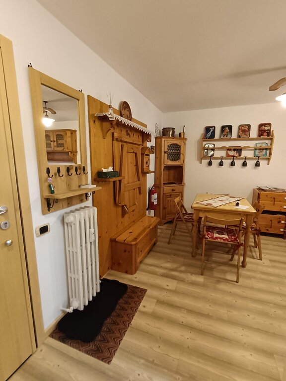 Questo grazioso e accogliente appartamento si trova a due passi da Pinzolo nel cuore delle dolomiti di Brenta. Grazie alla posizione tranquilla immersa nella natura e all'atmosfera calda e avvolgente degli arredi in legno è l'alloggio ideale per concedersi piacevoli momenti di relax in coppia o in famiglia. La posizione strategica di questo appartamento lo rende accessibile a tutti i servizi presenti in zona. Si accede all'appartamento con ascensore o mediante scale direttamente dal garage. L'alloggio dispone di una cuben attrezzata e di un grazioso e ben illuminato soggiorno con divano letto, area TV e accesso diretto al giardino esterno nel quale è possibile rilassarsi godendo di tutta la tranquillità offerta dal bosco . Dal disimpegno si accede alla zona notte composta da una camera da letto matrimoniale e da un bagno con doccia e lavatrice. È presente inoltre una sala giochi condominiale attrezzata con tavolo da ping pong e calcio balilla utilizzabile gratuitamente. La posizione strategica di questo appartamento lo rende accessibile a tutti i servizi presenti in zona: impianti di risalita Pinzolo parco pineta con area gioco per i bambini bio lago tennis stadio del ghiaccio biblioteca pista ciclabile noleggio sci/biciclette supermercato bar e ristoranti lavanderia distributore di benzina ufficio postale Principali distanze: Pinzolo: 1 Km Giustino: 1,2 Km Carisolo: 2,3 Km Madonna di Campiglio: 14 Km Impianti di risalita di Pinzolo 1,3 Km Farmacia di Pinzolo: 1,1 Km Golf Club Rendena 4,9 Km