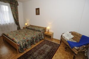 Siamo in una zona particolarmente comoda a tutti i servizi: a 100 m dal lago, dalle strutture sportive e dal parco parco giochi e a 150 m dal centro paese. L'appartamento è spazioso, con 2 stanze da letto, una cu/soggiorno, un ampio bagno finestrato con doccia , balcone e un terrazzo attrezzato con tavoli e lettini sole. Cosa trovate nell'appartamento: lavastoviglie, forno a microonde, frigorifero con cella freezer, asciugacapelli, asse e ferro da stiro, TV 32", wifi, cassetta di sicurezza, parcheggio auto, biancheria da letto e bagno. Possibilità di utilizzare una lavatrice a gettone. Vi forniamo la Paganella Guest Card. A 100m di distanza trovate la fermata dello skibus in inverno, del bus giropaese in estate.