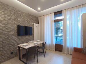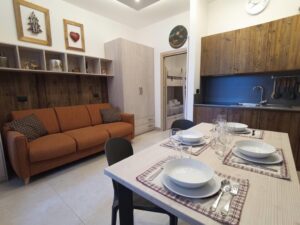 Monolocale al piano terra, composto da angolo cottura-soggiorno con divano letto e letto a castello, 1 bagno con doccia; terrazza e parcheggio; sono ammessi animali domestici solo di piccola taglia. Lingue parlate: Inglese, tedesco, francese e spagnolo.