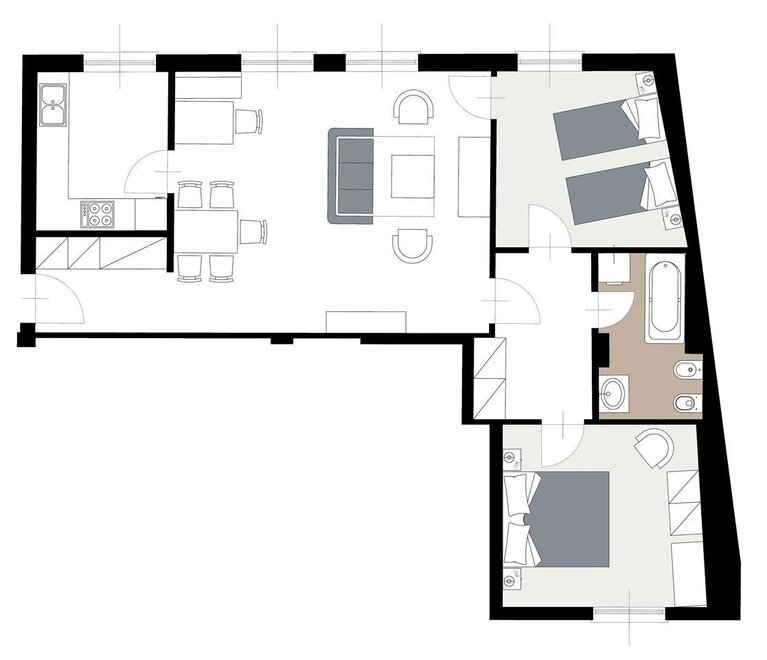 È l’unico dei nostri appartamenti ad essere situato in viale Roma a 100 m da Piazza Cavour, è al primo piano con ascensore ed è dotato di posto auto in cortile privato ed è in zona pedonale ZTL. Misura circa 90 mq ed è adatto per un massimo di 6/7 persone, ha una finestra sul viale Roma e quattro sul cortile interno ed è fornito di coperte, cuscini e TV. È composto da due camere da letto doppie, sala soggiorno con divano letto matrimoniale, cucina abitabile (accessoriata con stoviglie, pentolame, posateria e utensili, frigorifero e congelatore, piatto 4 fuochi, forno, lavabo, bidoni per la raccolta differenziata dei rifiuti, forno a microonde su richiesta), bagno con vasca/doccia e lavatrice.