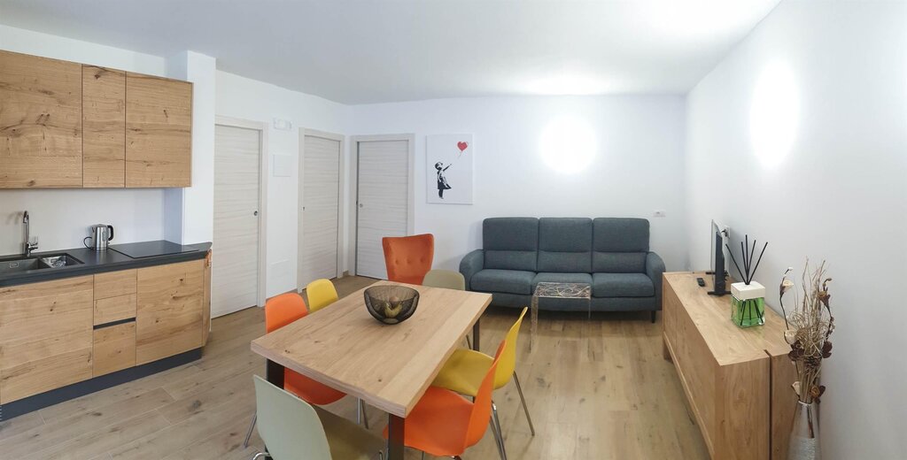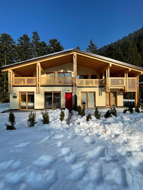 Lo Chalet Relax Molveno è situato a ridosso di un bosco di larici in posizione tranquilla e silenziosa a metà strada fra i Comuni di Andalo e Molveno. Dista infatti 1,5 km dal lago di Molveno e 2 km dal paese di Andalo. Entrambe le località sono raggiungibili tramite servizio bus gratuito oppure a piedi percorrendo un sentiero lungo il rio Lambin.L'appartamento è di 70 mq, collocato al piano terra e di recente costruzione in classe A.E' dotato di ampia zona giorno con sala da pranzo, salotto, angolo cottura con lavastoviglie ed un bagno con lavatrice/asciugatrice.Le camere sono due per un totale di sei posti letto, cosi composti : una camera matrimoniale per due persone e una camera con due letti a castello per quattro persone.L'appartamento è provvisto anche di ampio giardino read uso esclusivo, posto auto scoperto, locale per ricovero biciclette ed accesso gratuito al collegamento WI-FI.