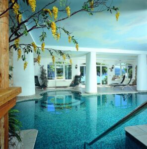 Caratteristico albergo di montagna a due passi dal centro, in posizione panoramica. Stanze dotate di servizi, balcone, telefono TV-sat e cassaforte. Ampio parcheggio, giardino, terrazzo prospicente il lago, ascensore. Cucina curata con menù a scelta, buffet colazioni e insalate. Zona fitness con bagno turco, sauna, palestra, piscina con cascata terapeutica per la cura della cervicale e idromassaggio, solarium trifacciale.
