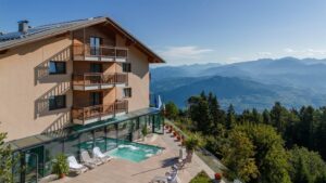 Siamo aperti tutto l’anno a Vaneze, al km 13 della strada che da Trento sale sul Monte Bondone, una struttura storica rinnovata con criteri di praticità, semplicità ed eleganza. Come in un moderno e confortevole rifugio di montagna, vogliamo far vivere al nostro ospite una esperienza di vacanza che gli permetta di rilassarsi, e che lo coinvolga nella natura, nella cultura, e nell’ospitalità tipiche del Trentino e del Monte Bondone. Disponiamo di camere doppie, camere Family e suite tutte dotate di televisione a schermo piatto, telefono, cassaforte, minifrigo, connessione Wi-Fi e asciugacapelli. La maggior parte delle camere ha un balcone e/o gode di vista spettacolare sulla valle dell'Adige e le montagne circostanti. La nostra struttura inoltre vi può offrire: - snack bar e ristorante con ampio menù in abbinamento ai migliori vini del Trentino. Particolare attenzione è rivolta ai prodotti tipici della tradizione trentina. La cucina offre anche una raffinata selezione di pasti per ospiti celiaci, vegani, vegetariani e diabetici - centro benessere di oltre 500 mq, piscina riscaldata interna ed esterna con idromassaggio, sauna finlandese, biosauna, bagno turco, docce emozionali, cascata di ghiaccio, cabine per trattamenti e massaggi sportivi o rilassanti, area relax privata dotata di sauna a infrarossi, area relax con vista. - terrazza solarium - palestra attrezzata con macchine Technogym e spazio per corpo libero - campo da tennis e calcio a 5 - deposito sci riscaldato con scalda-scarponi - sala riunioni fino a 50 posti e copertura Wi-Fi gratuita completa - ampio soggiorno, angolo lettura e panorama come in un rifugio di alta montagna - miniclub - sala giochi con giochi elettronici, ping pong, calcetto, biliardo, ecc. - simulatore di Golf indoor Gli spazi esterni infine si prestano, in aggiunta alle sale interne, per essere utilizzati in occasione di aperitivi, pranzi, ricevimenti o cerimonie all'aperto godendo della vista panoramica sulla valle e sulla città di Trento.