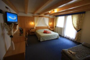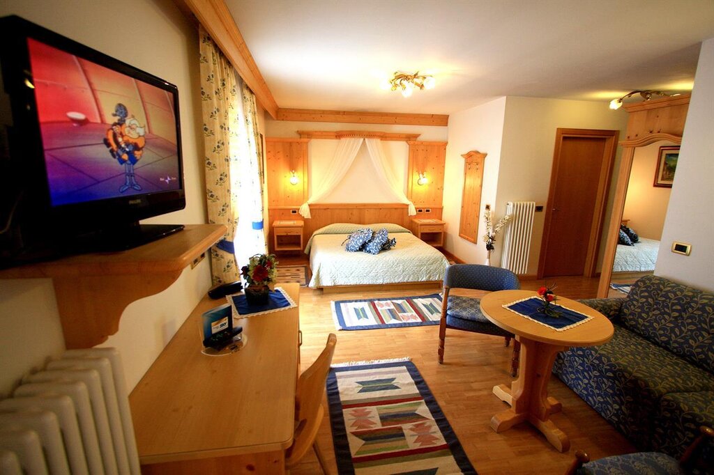 Hotel situato in posizione privilegiata nel centro di Canazei. Ristorante di ottimo livello, cucina tipica. Centro benessere con Sauna finlandese e biosauna, bagno turco e fitness Technogym. Piscina con idromassaggio, nuoto controcorrente e cascata cervicale, in giardino una vasca Jacuzzi. Trattamenti e massaggi. Sala bambini e Miniclub. Camere dotate di tutti i comfort. Parcheggio e Garage coperto.