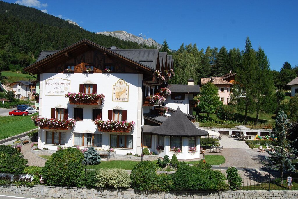 Il Piccolo Hotel Resort è situato in posizione tranquilla e panoramica, immerso nella natura del Parco e in un variopinto giardino, a soli 300 metri dal centro paese e 700 metri dagli impianti di risalita. Le stanze tutte con balcone e vista panoramica sulle Dolomiti o sulla Paganella, dispongono di telefono, TVlcd, cassaforte frigobar ed asciugacapelli. Family room e suite design room. Il relax, la quiete e la serenità dei nostri ambienti sia interni che esterni sono ideali per ritrovare il benessere: salette arredate in più stili, sala giochi per i più piccoli, fitness room cardio con solarium U.V.A., cantina degustazioni, ampio garage e, nella residenza vicina all'hotel, sala biliardo. Fermata skibus di fronte all'hotel e noleggio-deposito sci direttamente in albergo. Luminoso e soleggiato ristorante con buffet per la colazione, gli antipasti e le verdure, 4 scelte di menu con specialità locali e piatti tradizionali italiani. Attenzione per le intolleranze alimentari.