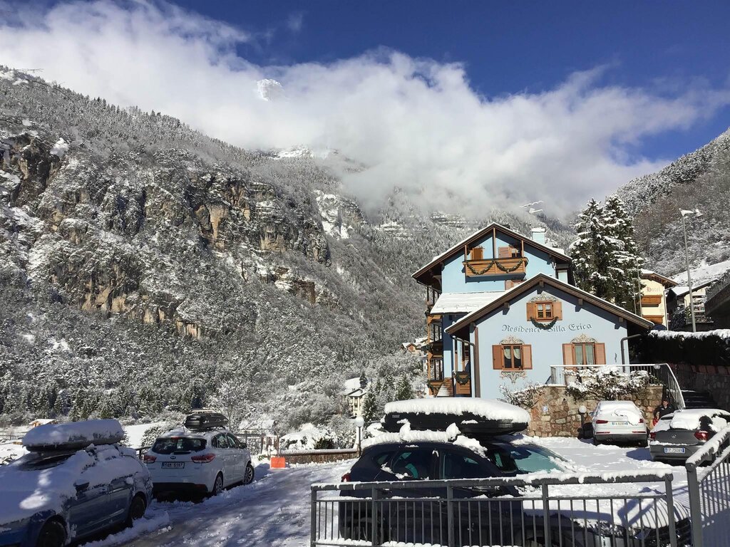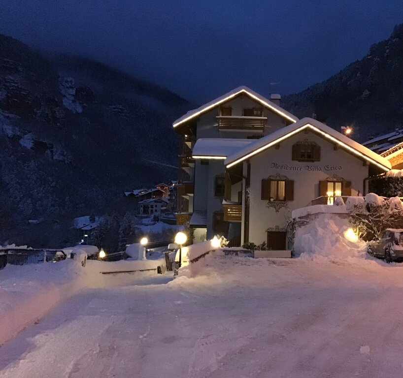 Il residence Villa Erica si trova ai bordi della zona pedonale del comune di Molveno ed è situato in posizione panoramica e tranquilla a pochi metri dal centro, dallo splendido lago e dagli impianti di risalita verso l'altopiano del Pradel. Il residence dispone di diverse tipologie di appartamenti: bilocali e due differenti tipi di trilocali; sono dotati di zona giorno con angolo cottura (fornito di stoviglie e pentole) e divano letto, TV, bagno con doccia, 1 o 2 camere da letto. Provvisti di ogni comfort, i nostri alloggi sono luminosi e accoglienti e tutti godono di una vista mozzafiato sul lago o sulle Dolomiti di Brenta. Tra i servizi a disposizione degli ospiti della struttura troviamo il giardino attrezzato, barbecue, spazio giochi per i più piccoli, parcheggio numerato, lavanderia con asciugatrice, wifi e ascensore e deposito sci o biciclette.